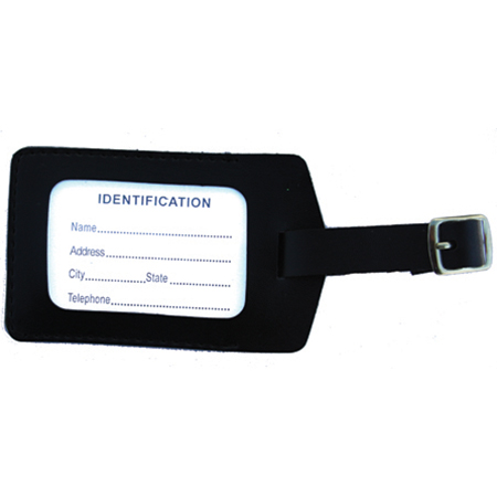 Identify your luggage with this simple leather tag with versatile buckle strap and clear plastic cover to protect the paper information insert. Adjustable strap allows you to fit a variety of luggage sizes and travel bags.